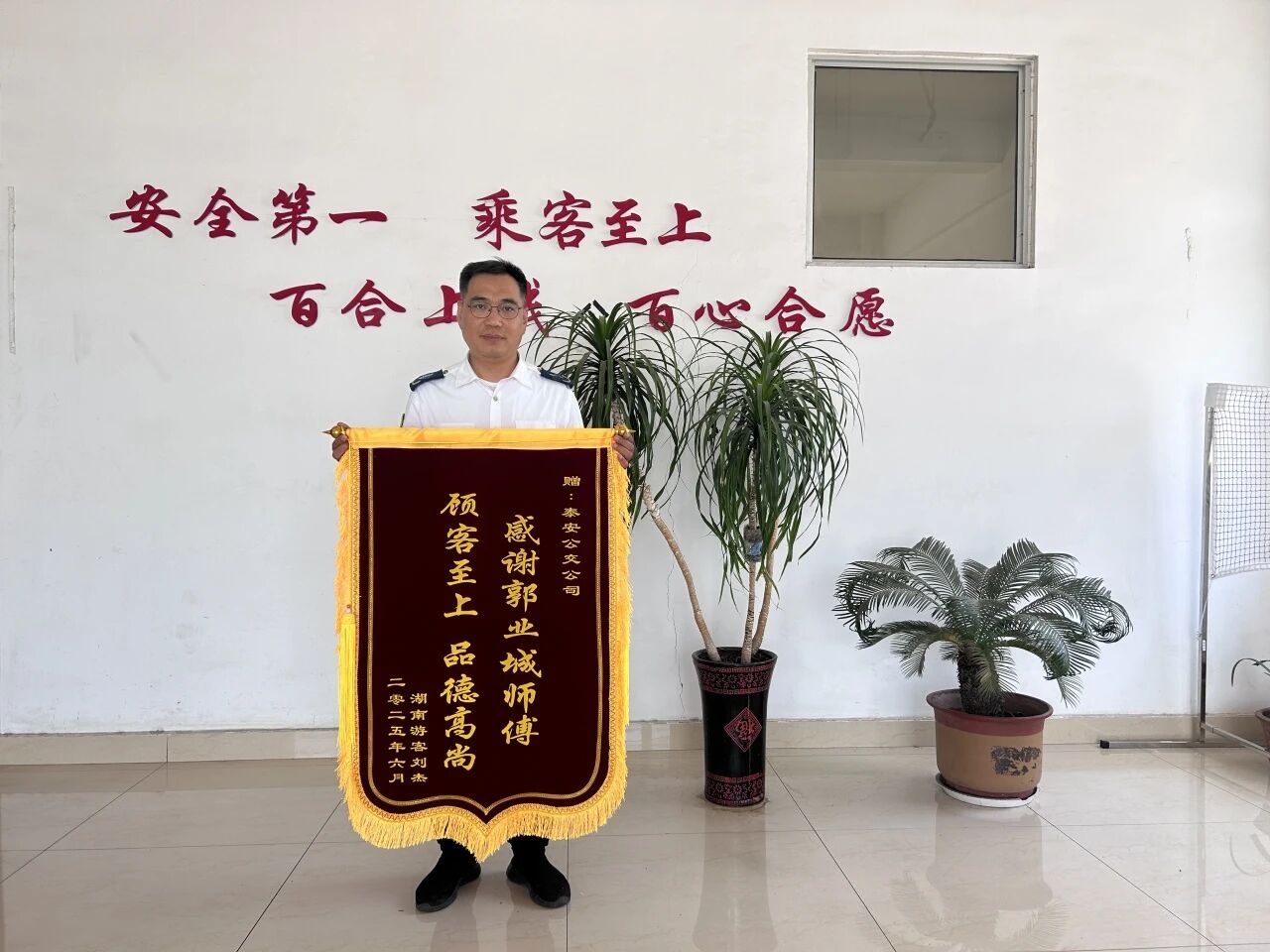 一面跨越千里的錦旗,承載著兩地溫情;一段平凡崗位的善舉,彰顯著城市文明。近日,泰安公交第一分公司收到湖南游客劉女士寄來(lái)的錦旗,字里行間滿是對(duì)4路車駕駛員郭業(yè)城的誠(chéng)摯謝意。這個(gè)發(fā)生在車廂里的暖心故事,以最質(zhì)樸的方式,成為泰安城市文明的鮮活注腳。