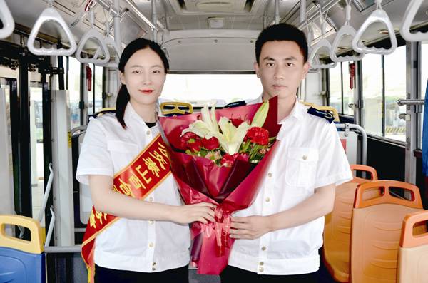 6月20日,公司泰山百合志愿者為第五分公司游1路駕駛員李寧送上一束百合花,對他拾金不昧、助人為樂的精神表示贊揚。